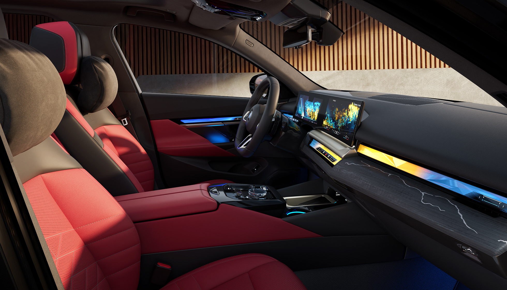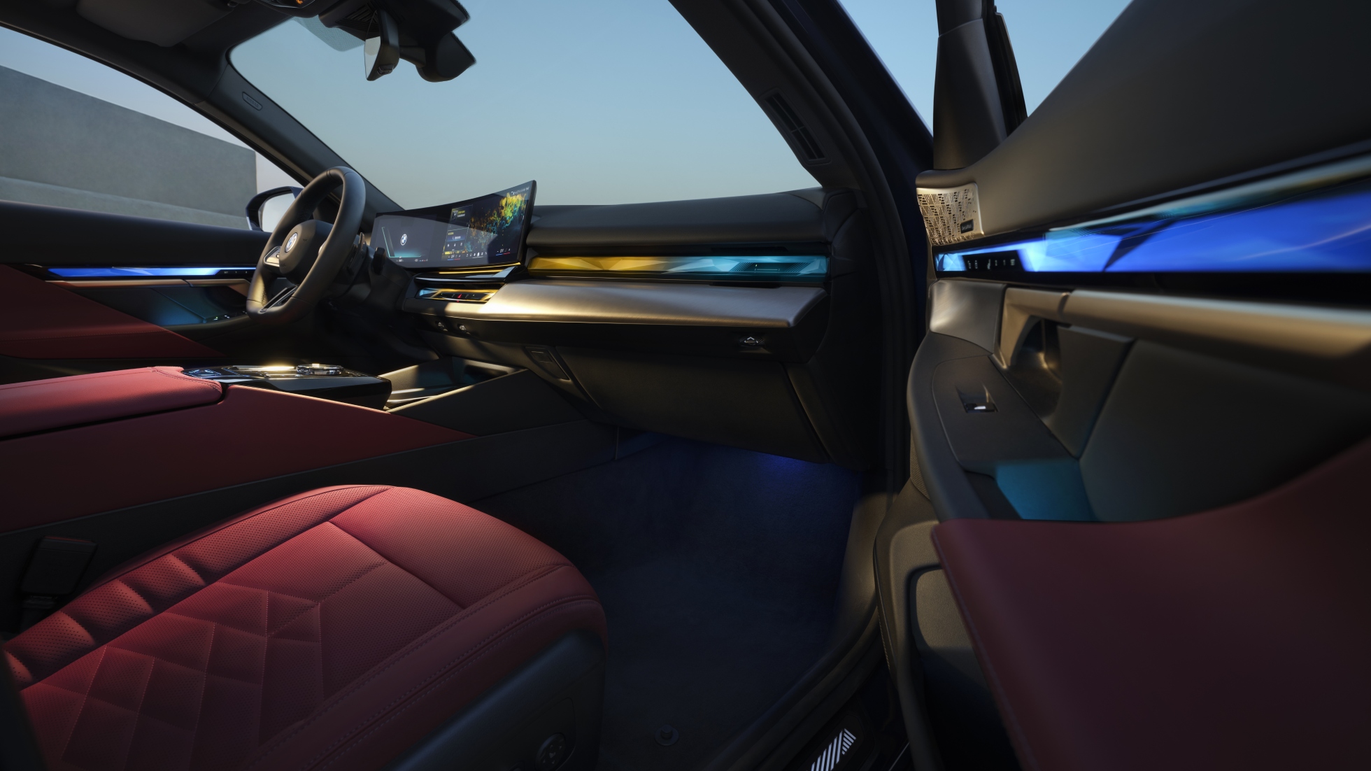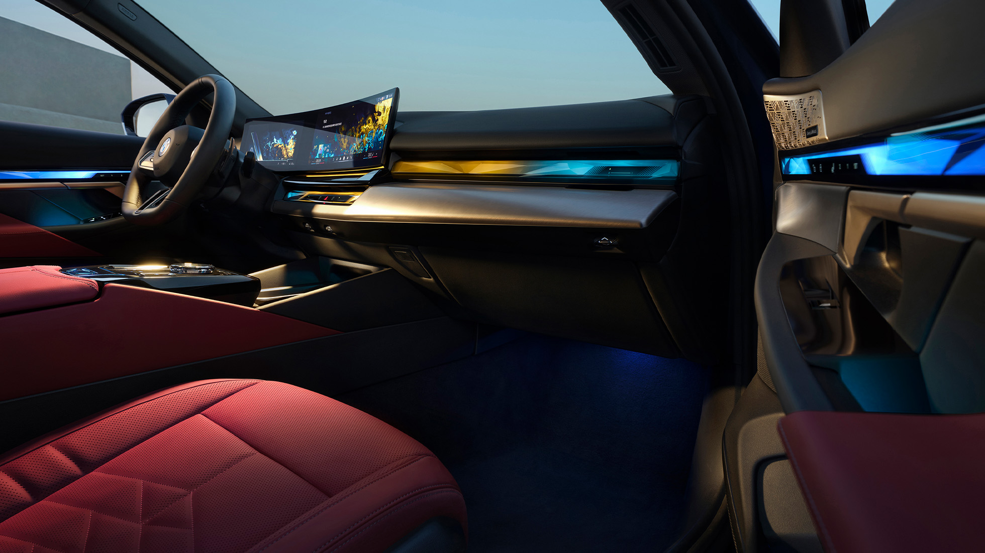 BMW 5系环抱式交互光带,可根据不同的My Modes 主题模式带来丰富多样的车内视觉风格,变幻不断的视觉效果与极具感染力的灯光氛围,随心打造专属出行体验。