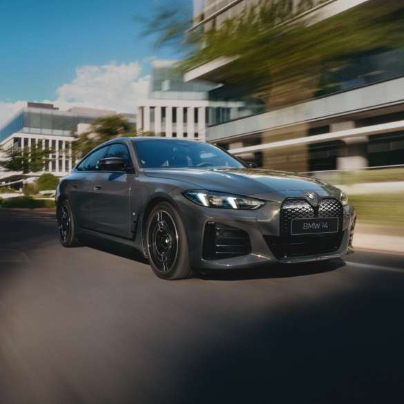 纯电动BMW i4,以长发动机罩和短前悬的设计,塑造协调而修长的车身比例。四门轿跑灵动的线条与优雅的掀背设计,一气呵成流畅衔接,勾勒出灵动破风的动感车身。