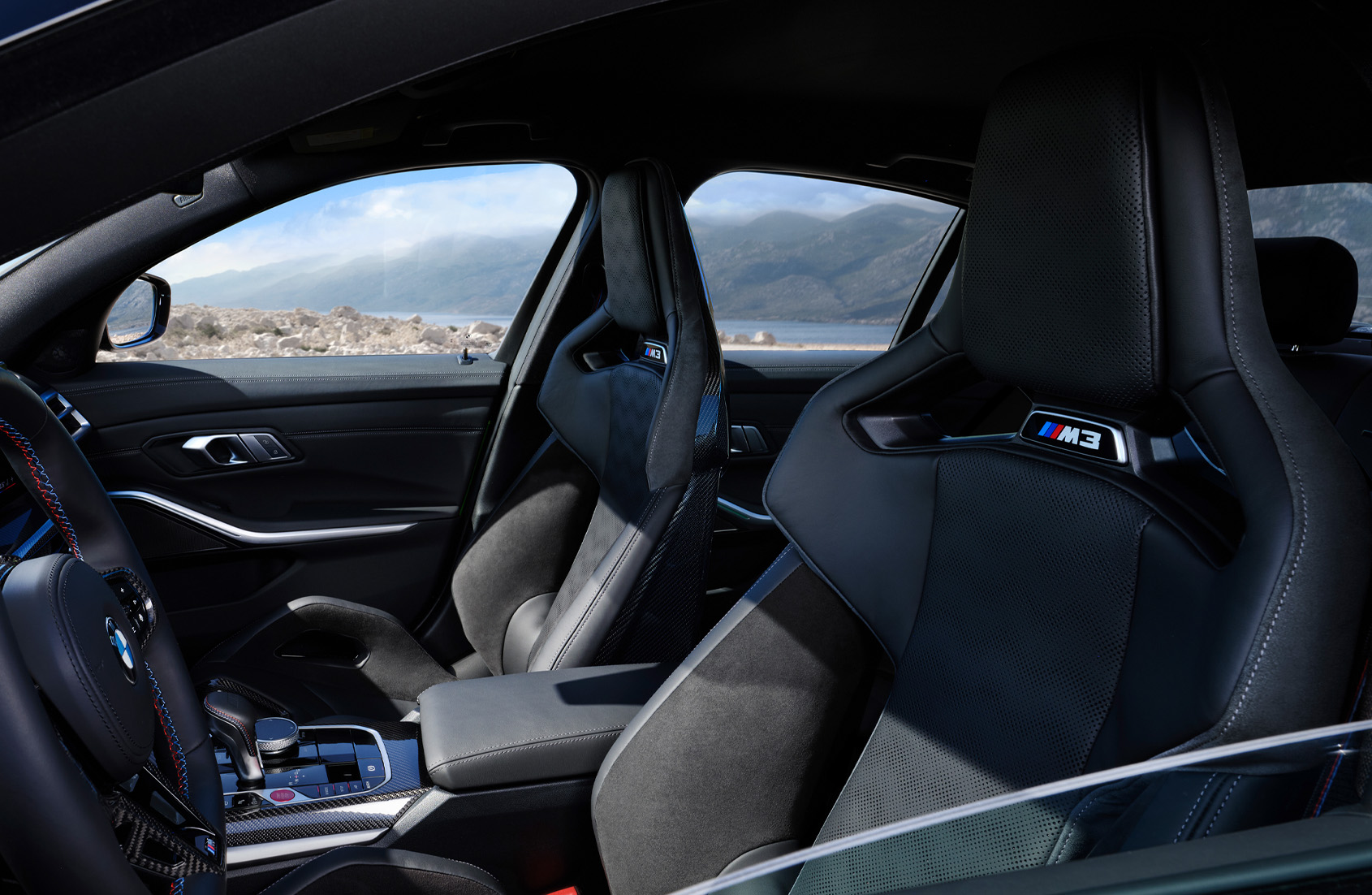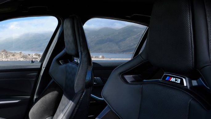 BMW M3 雷霆版搭载轻量化M碳纤维桶形座椅,可为驾驶者提供卓越的侧向支撑,座椅表面的碳纤维纹理,搭配专属“M3”发光标识,优雅与力量并存,运动血统不言而喻。