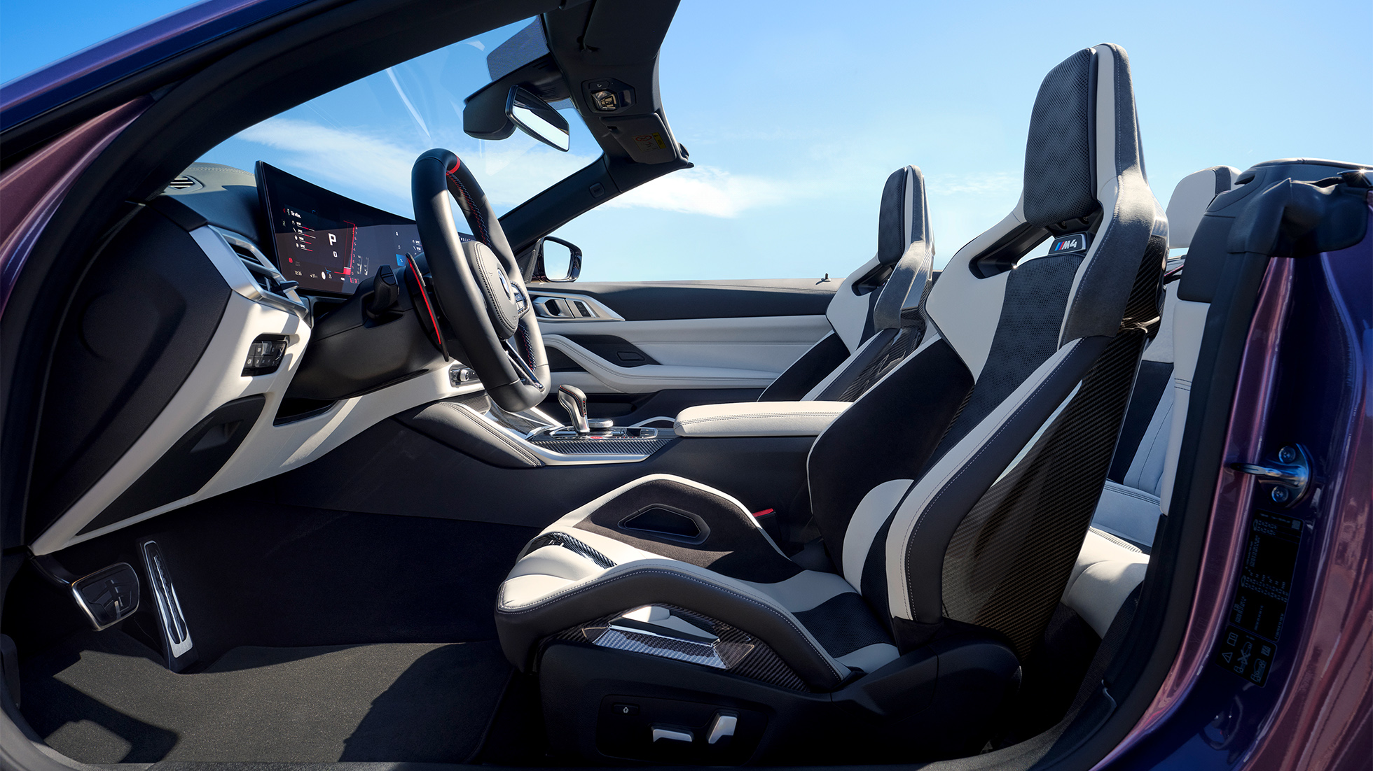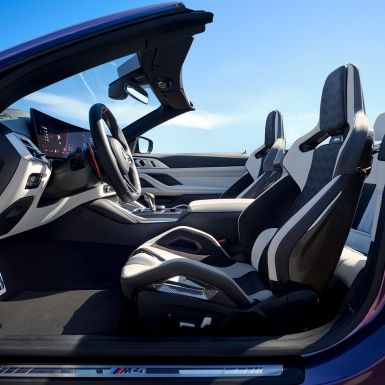 带专属“M4”发光标识的前排M碳纤维桶形座椅,尽情彰显M赛道风范。同时能够为驾乘提供理想的全方位支撑,置身其中,心潮奔涌。