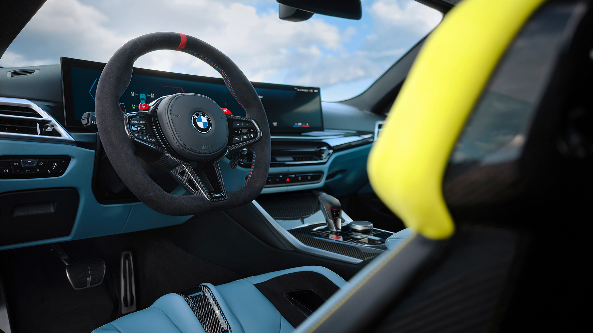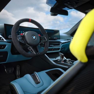 经过轻量化设计的前排M碳纤维桶形座椅,与个性鲜明的碳纤维内饰细节相互呼应,尽释M风格内涵。 M运动型多功能Alcantara方向盘,设计独具赛道风范,进一步营造动感的座舱氛围。