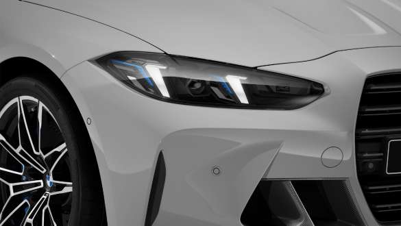 BMW M4双门轿跑车 雷霆版为BMW经典的四目前灯设计带来了新的表达。 矩阵式的LED自适应大灯, 采用鲜明的垂直式设计,彰显出犀利而坚定的个性。还能自如应对各类驾驶场景,随时提供可变的、精确的照明效果。