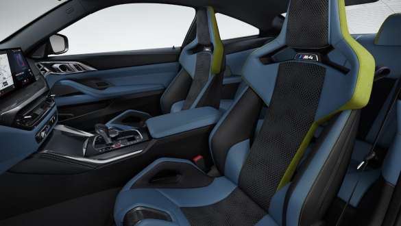 前排M碳纤维桶形座椅经过轻量化设计,侧向支撑坚实有力,能够带来出色的M驾驶体验。座椅带有专属的“M4”发光标识和独特的碳纤维细节,赛道个性,锋芒毕现。