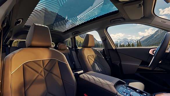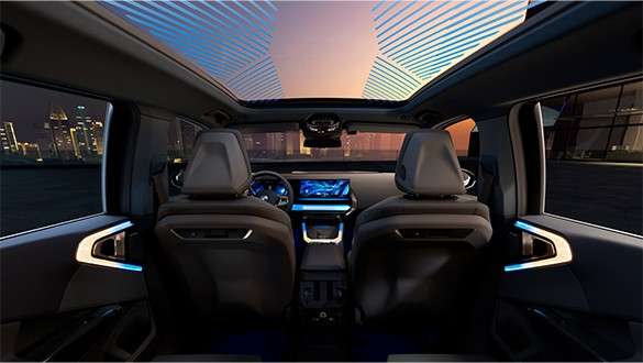 全景星轨天幕搭配电动遮阳帘,开合之间,星光晨辉尽收眼底。纵横交错的几何线条,空间感十足,可随7种My Modes模式切换颜色,光影变幻间,尽显精致豪华。